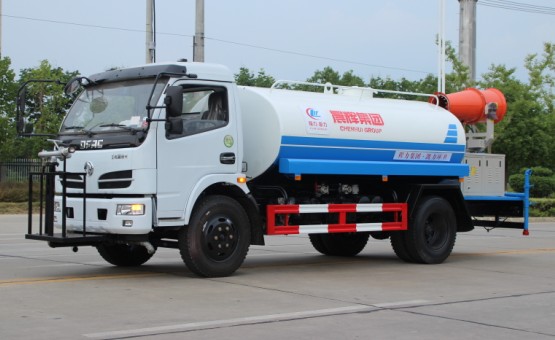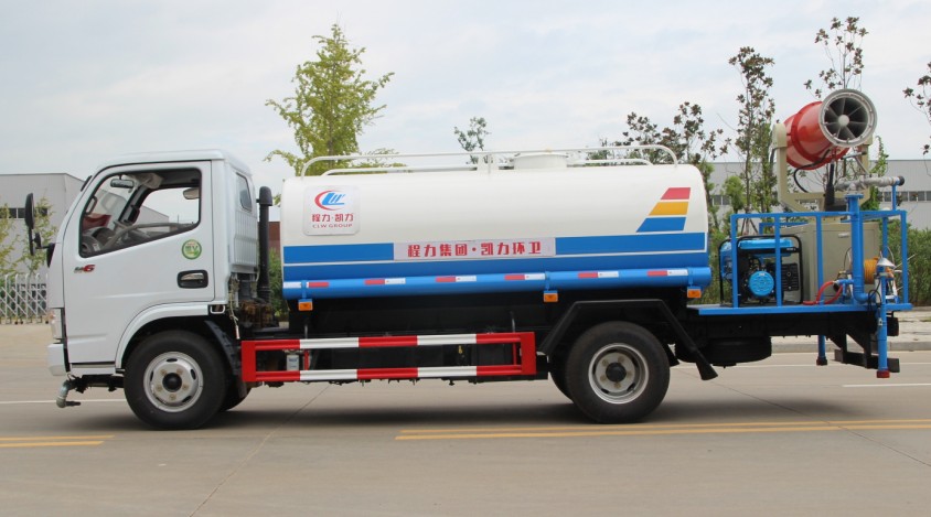 東風多利卡D9灑水車帶霧炮(圓罐)高清圖片