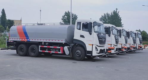 國六東風天龍后雙橋18方灑水車批量發(fā)車圖片_程力灑水車廠家