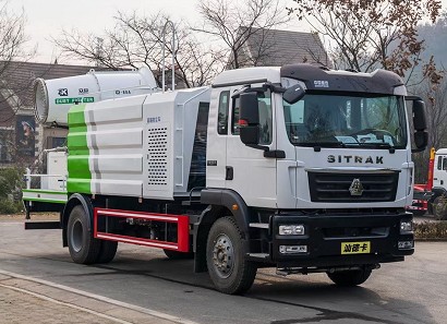 國六重汽汕德卡后雙橋多功能抑塵車,容積15-18立方,選裝80-120米霧炮!