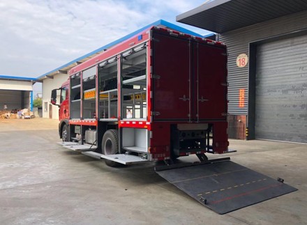 1、鋁合金箱體,貨箱右側開門,尾部開門;2、車尾部帶液壓升降尾板,額定載重≥3000kg,最大舉升高度≥1500mm;