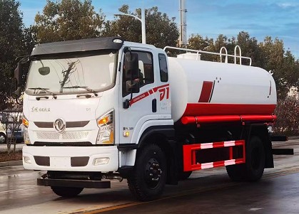 罐體用4mm武鋼碳鋼板制作,容積12立方,罐內隔板具有防波作用,專用自排自吸灑水泵,前沖、后灑、側噴、高位花灑、后工作平臺、360度可調節綠化水炮,自流閥、濾網、消防接口(可連接消防栓取水,可作應急消防用),罐前量管(觀察罐內水位)、罐后爬梯、罐上罐口、帶簡易護欄、抽水管兩根,罐體表面雙層油漆工藝開選裝大功率霧炮。高炮可調節為柱狀、霧狀、毛毛雨狀,最大揚程28米以上、側噴功能,前沖工作范圍12米以上,側噴工作范圍6米以上,可自吸自排,自吸高度7米以上,灑水車電音樂提示行人, 高音喇叭,灑水均勻,沖擊力強勁,路面覆蓋率高,作業效率高。