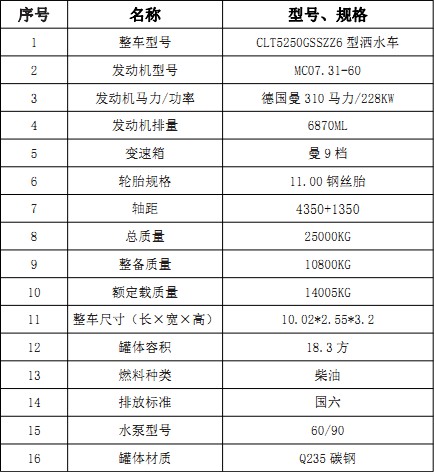 1、整車型號(hào): CLT5250GSSZZ6型灑水車
