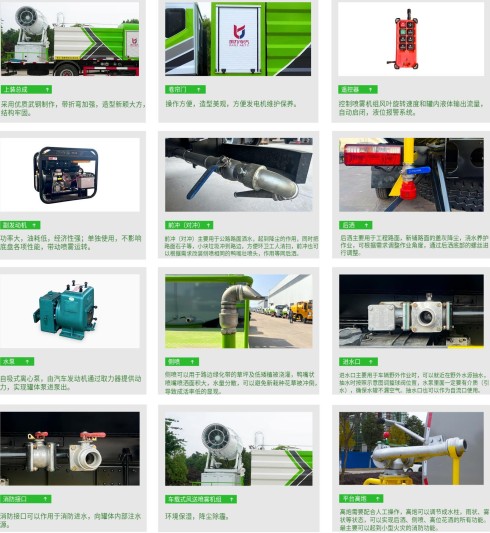 我公司生產(chǎn)的抑塵車同時還配置灑水泵,可實現(xiàn)綠化噴灑功能,更能在緊急情況下,實現(xiàn)低壓消防灑水功能。同時噴霧機也可以作為農(nóng)藥噴灑裝置使用,實現(xiàn)多種功能集于一身,一車多用,噴霧車上裝載有高性能遠程噴霧機,射程遠、覆蓋范圍廣、工作效率高、除塵速度快。所有灑水系統(tǒng)閥門可加裝氣動控制,氣控開關(guān)集成在駕駛室內(nèi)操作。節(jié)約了人工成本,降低了作業(yè)人員勞動強度。